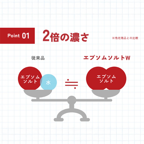 エプソムソルトWは、一般的なエプソムソルトの約2倍の濃度を実現。