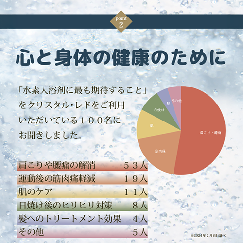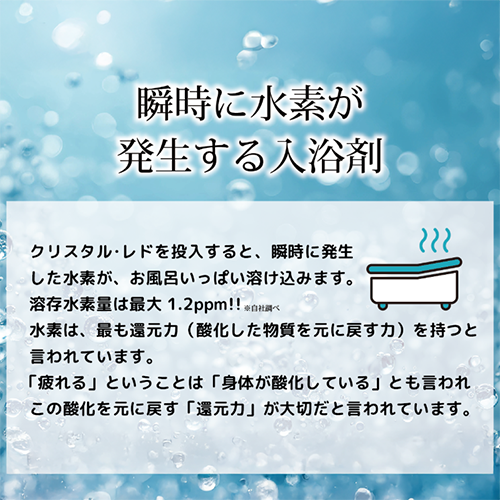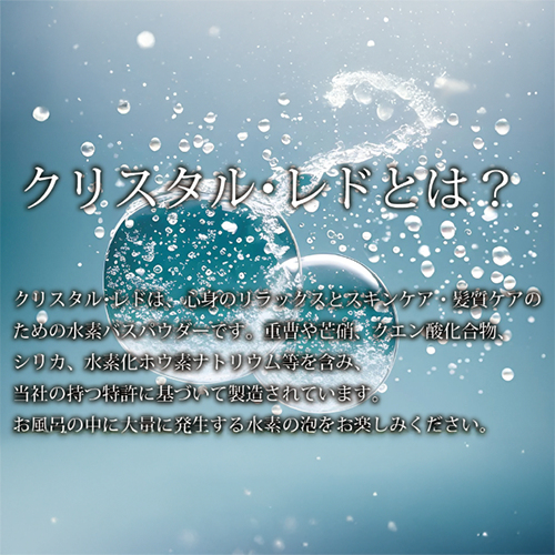 クリスタルレドは、心身のリラックスとスキンケア・髪質ケアのための水素が発生する入浴剤です。
