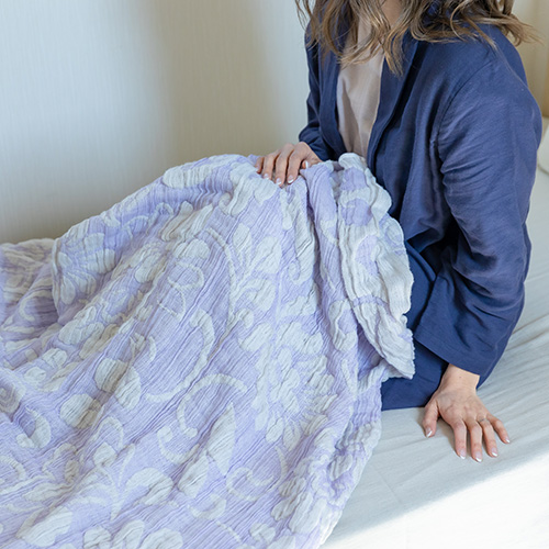 メレンゲのような優しい肌触りにこだわったガーゼケットです。保湿性に優れ、通年使いのガーゼケットとしておすすめです。