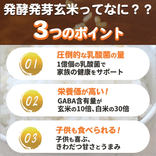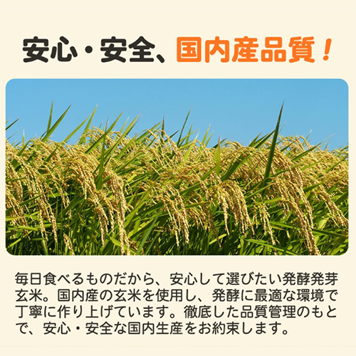 発酵発芽玄米は、白米を炊く時にひとさじ加えるだけでおいしく炊ける、発酵食品。おいしい造り酒屋の伝統的な匠の技術を使った特許製法で、発芽させた玄米を発酵させました。玄米由来の植物性乳酸菌を普通の玄米の約10万倍まで増やしました。毎日食べるごはんで気軽に腸活、免疫力アップ。