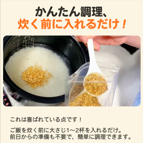 | 召し上がり方 | 炊く直前に白米1合に対し付属スプーン1杯(約10g)を入れて炊飯してください。 |