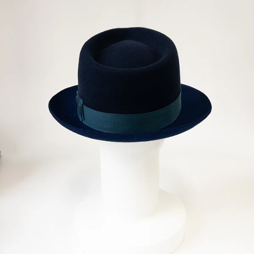 ロングセラーのウールフェルトハットをバイカラーに組み合わせたカジュアルフォーマルなハット
