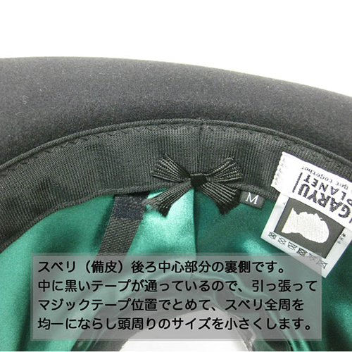 帽子は使い続けていると、性質上の問題で少し縮んでしまいます。 そのため少しゆとりがあるもの推奨しています。