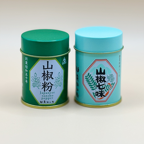 山椒粉と山椒七味。創業以来続く人気の2商品を専用ボックスに詰めました。