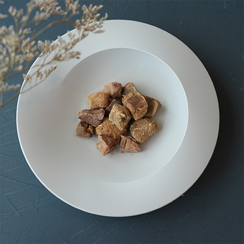 「国際ジビエ認証」を取得した施設で処理された高品質な鹿レバーを、約100時間かけてフリーズドライに仕上げました。