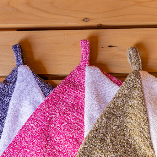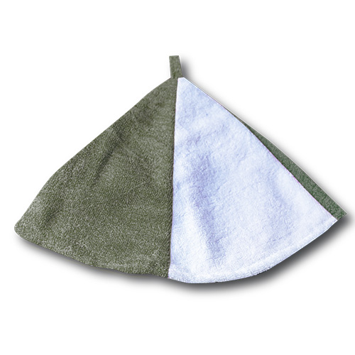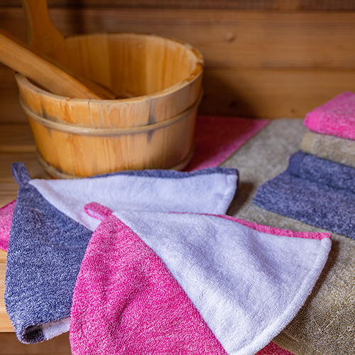 髪の毛と頭皮を熱から守り、のぼせ防止のサウナハット。汗や水分を素早く吸収。コンパクトで持ち運びにも便利です。