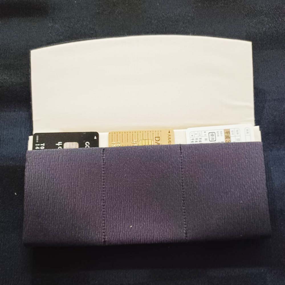 着物地を使用した、小銭とお札とカードが入れられる財布です。職人が時間と手間をかけて染め上げた独特の風合いもお楽しみいただけます。