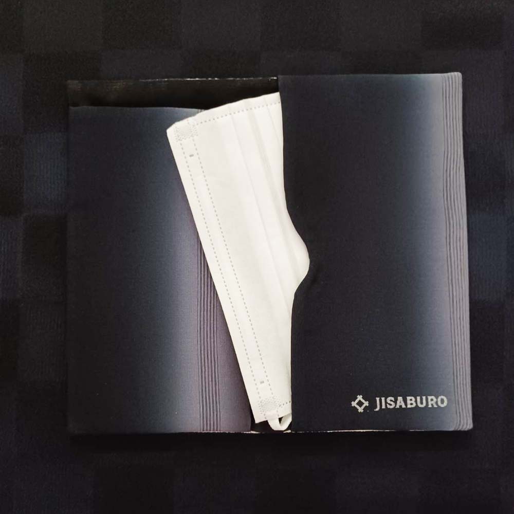 表面に帯地を、裏面には着物地を使用しています。使用中の物と未使用の物を分けて入れられるよう、2ポケットになっているマスクケースです。