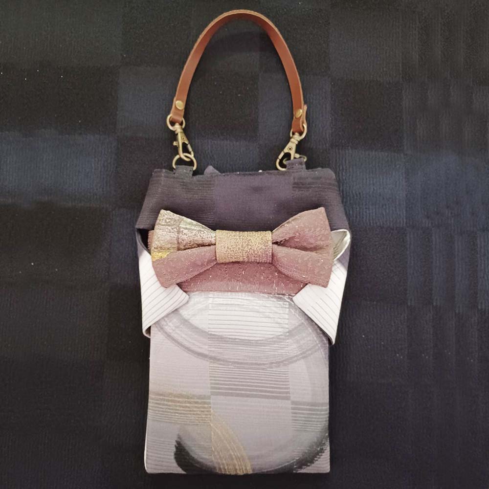 着物は着物地・帯は帯地を使用し、完全に着物の着姿を再現した携帯ケースです。特大のため、お使いの携帯ケースを付けたまま入れられます。