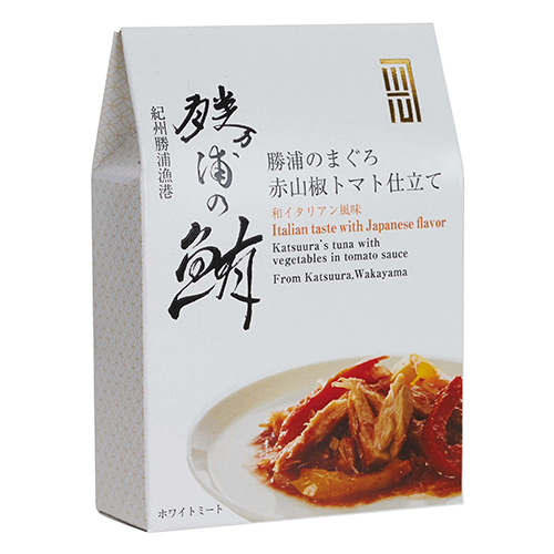 | 原材料 | びんちょうまぐろ(和歌山県産)、トマト水煮、オリーブオイル、ひまわりオイル、パプリカ、玉葱、塩、赤山椒(和歌山県産)/ クエン酸 |