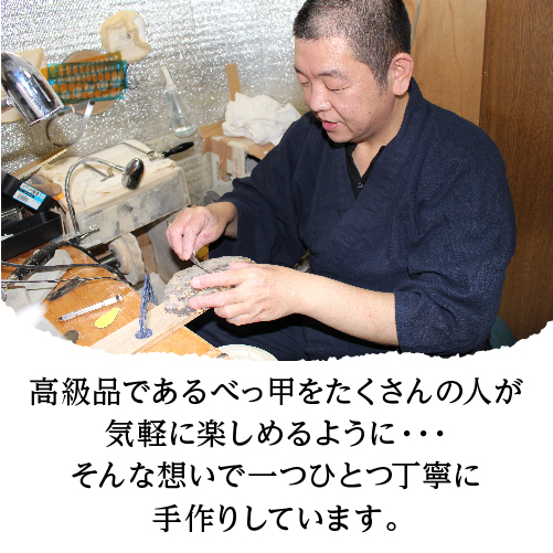 希少な天然べっ甲を職人の手で加工して作っています。