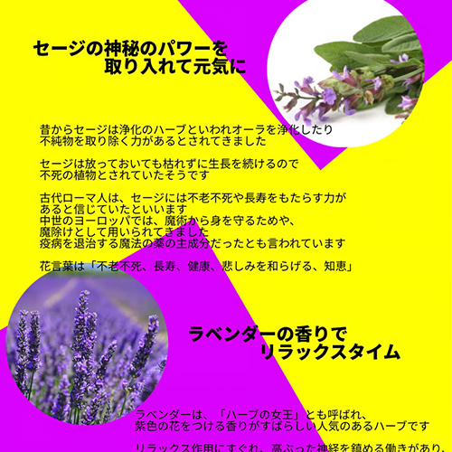 | 原材料 | てんさい糖(国内製造)、生姜、ゆず果汁、 、レモン果汁、ラベンダー、クローブ、紫芋パウダー、セージ、カルダモン、シナモン、バニラビーンズ、ゆず果皮、コリアンダー、ブラックペッパー、オールスパイス、ナツメグ、唐辛子 |