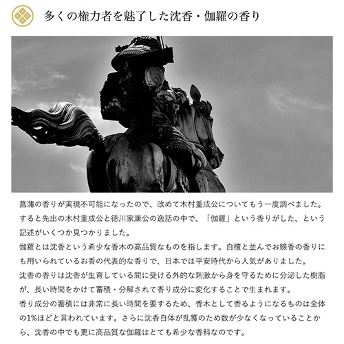 男性向けアロマ『ミスターアロマ』の企画・販売を手掛けている。男性へのアロマ普及にも精力的に取り組み、2024年には代表による著書『アロマ男子のススメ』を出版。YouTubeチャンネル『アロマ男子のススメ』を同年4月に開設。クラウドファンディングでの資金調達を通じてリリースした『武士道アロマ』は、インバウンド向け商品として新たな市場の開拓にも取り組んでいる。