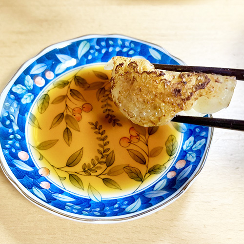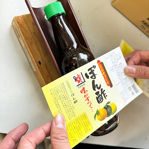国産原料にこだわり、全国の産地から厳選した野菜、かんきつ類、魚節(さかなぶし)、果物、砂糖、醤油を使ったポン酢です。酢を使わず出汁にこだわった人気の一品。干しシイタケは国産品だけを使用し、酢が持つ独特のえぐみを避けて、徳島県産スダチなどで爽やかに味付けした風味が特徴です。