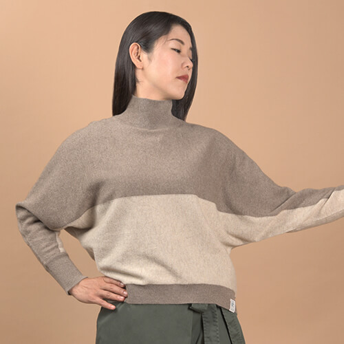 オーガニックカシミヤ バイカラーセーター