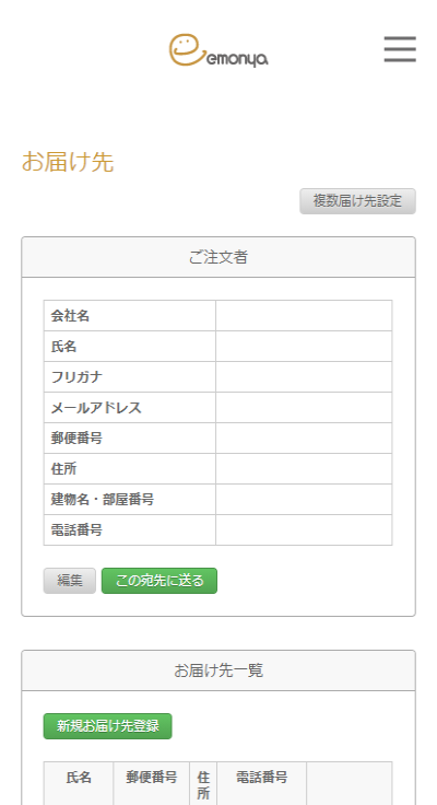 お届け先の確認ができましたら、「この宛先に送る」をクリックし次のページに進みます。