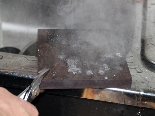 削りカスなどの不純物が入った場合も、模様が変わってしまう。完成形をイメージして形を整えながら、熱の調整と、不純物の混入にも気を配る。張り合わせは、緊張の連続だ。