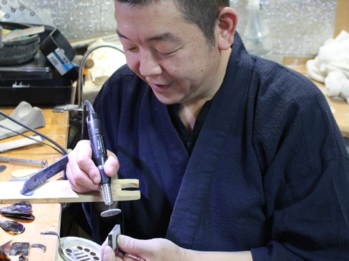 「他はしないような、うちでしかないモノをつくりたい」高級品であるべっ甲をたくさんの人が気軽に楽しめるように、という思いのもと、独自性のある小さなべっ甲加工品を中心とした作品づくりを行う。