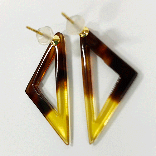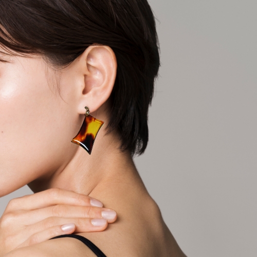 天然べっ甲だから、色も模様も密度も厚みも異なる世界で一つだけの短冊型のピアスです。職人が、丁寧に細かく繊細な加工技術で作りました。