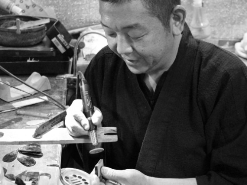 日本のべっ甲の三大生産地の中でも、岡崎さんのいる大阪はその加工技術の精巧さで有名な「なにわべっ甲」の地。大阪府の伝統工芸品にも指定されている。大型のべっ甲品やメガネなどの日用品を多く取り扱う他の産地とは違い、繊細な透かし彫り技法に代表された彫刻技術が特徴で、素材をくり抜き、模様の間をレースのように仕上げる技術が熟練職人は身に付けているのだ。