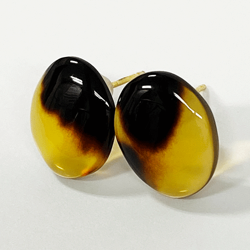 希少な天然べっ甲を職人の手で加工して作った楕円のピアスです。天然素材ゆえ、一つ一つが異なる持ち味を持つ、世界でたった一つのアクセサリーです。