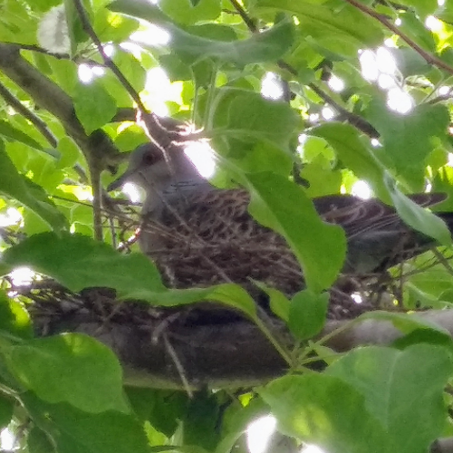 鳥がりんごの木に巣を作っていました