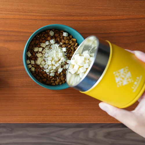 『IMA』の各製品は、そのまま与えてももちろん良く、フリーズドライ加工しているため、与え過ぎの心配もほとんどない。それでも心配な場合は、様子を見ながら与える量を調節してもらいたい。また、与え方のバリエーションを工夫しやすいのも特徴の一つだ。
