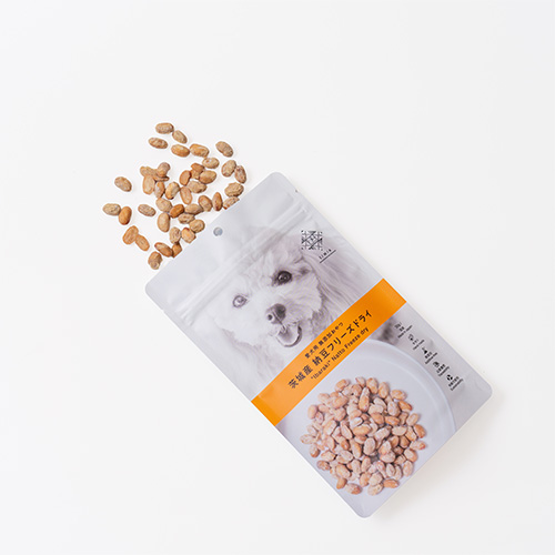 変わり種としてラインナップしているのが、北海道産チーズと納豆。特におすすめなのが『納豆』だ。仕入れているのは、もちろん納豆の本場・茨城のメーカー。国産の大粒大豆を使用した納豆をそのままフリーズドライ加工しているため、大豆本来の豊潤な香りがする。1粒ずつご褒美やおやつとして与えられて、非常に使い勝手にも優れている一品だ。