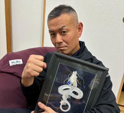 大手家電メーカーにて「日本のものづくり」の精神を学び、19年間にわたり国内外で活躍。その後、新たなチャレンジとして選んだのは、衰退産業とも呼ばれた京都の刺繍加工メーカーの跡継ぎとしての道。広い知見と、前職で培った商品開発の“いろは”により、下請けの刺繍加工業から、消費者に届ける最終商品の開発製造を倍増させた刺繍メーカーとして業態改革に成功。実用新案の登録や商標登録なども行い、技術力向上と商品開発の両輪で事業を軌道にのせてきた。「人を喜ばせること」が何より好きな人柄と、職人との密なコミュニケーション、そして徹底した強いこだわりで、他にはない刺繍作品、スパングルトーン®の開運アートを完成させる。