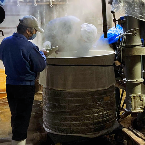 大きな被害を受けたのは奥能登だった。大口の取引が多い和倉温泉の加賀屋などの有名旅館も、まだ営業できないままのところが多く、他の旅館や料亭も復興が進まないため、売り上げも激減してしまった。新型コロナウィルスで半減した売り上げが、今度は地震、そして続いておこった豪雨被害で見通しが立たないままだ。「日本酒の大きな樽に米を送る大切な装置も壊れてしまっているのですが、震災から1年半が経った今も、家族総出で手作業で米を運び樽に入れるしかない状況です。それでも、うちはまだましで、奥能登では倒壊してしまった酒蔵もたくさんあります。」自身の置かれている立場が大変であるにもかかわらず、多くの仲間の苦難に心を痛め、できることがあればと、奥能登で建物が倒壊してしまった仲間の酒蔵の瓶詰めも当社で場所と機械を使ってやって貰った。みんなで助け合ってなんとかやっている現状だ。