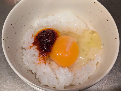レビューの星が5ばかりだと「ほんとに?」と思ってしまいがちな昨今だから、厳しくしようかと思ってたのに、食べたらそんな気も失せました。 TKGで飛べるとあったのでまずはTKGで!w 画像は食べる前でしたが、食べながら追いLA-YUしました! 辛味だけでなく旨味がいい!! お酒にも合う味なので、もっといっぱい買えばよかったと後悔しましたw ということでリピ確定です! ボイルしたお野菜にもつけたいと思ってるし、醤油とマヨと混ぜてスルメにつけたら止まらないと聞いたので、さっそくいろいろ試します! ごちそうさまでした!!