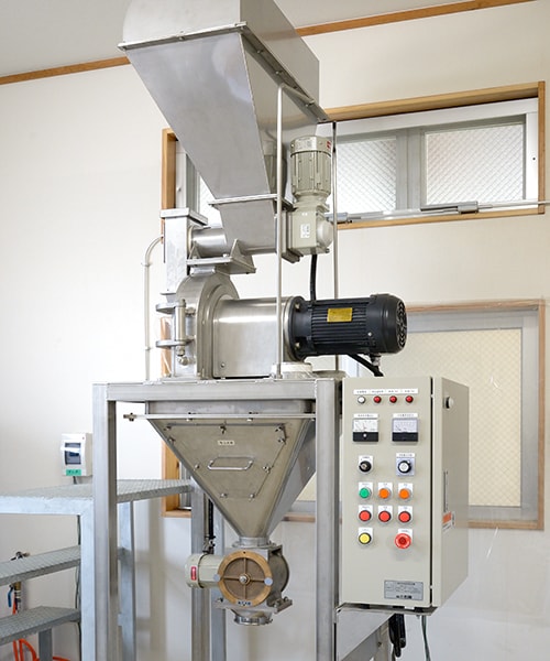 モリンガ青汁や、生姜湯や料理の味付けなどに用いる粉末生姜は、溶かして使いやすいよう、粒をきめ細かに砕く。