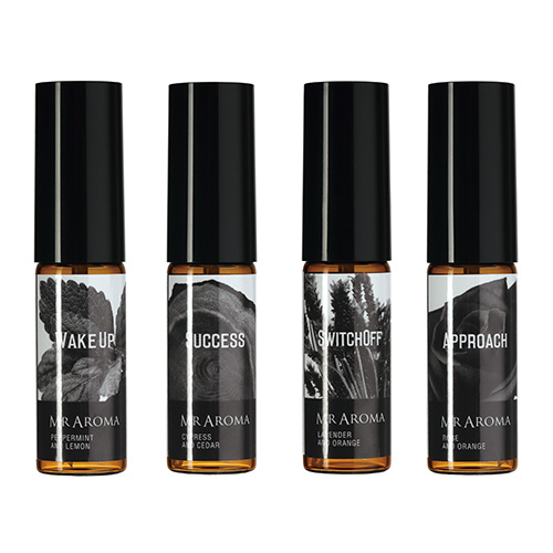また、香水のようにしつこく香りが続かないのも特徴だ。『ミスターアロマ』は、一般的なアロマとは違い希釈なしですぐに使えるスプレータイプ。手軽に持ち運べて、香りの持続は10分程度なので気分転換に適している。食事を邪魔するような心配もない。アロマならではの特徴にフォーカスして、星野さんは4つのタイプ別男性向けアロマ商品を開発した。