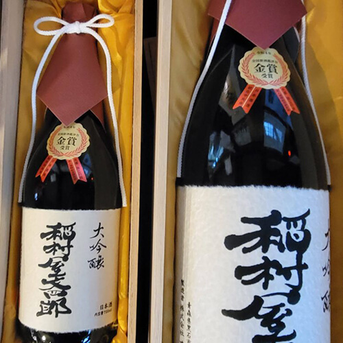 当主が代々受け継ぐ「稲村屋文四郎」の名を冠した純米大吟醸酒は、昔ながらの手法と現代的な技術で数多くの賞を受賞しており、その名に相応しい逸品だ。