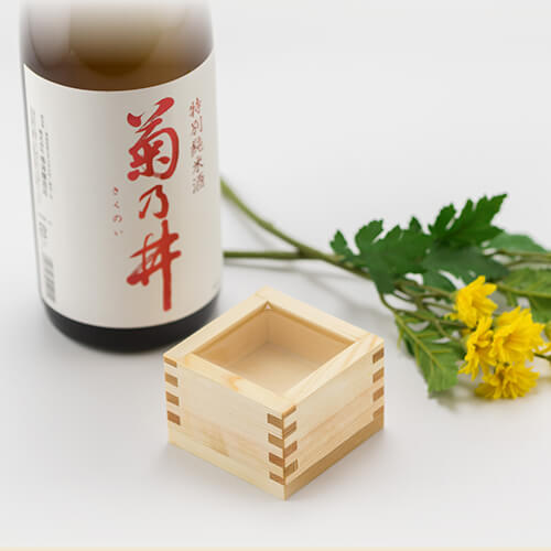 この商品名は、二代目当主が搾りの際に槽口ふなくちに菊の枝を添えたことに由来している。菊乃井特別純米酒の使用酵母は青森県産の「まほろば華」を使用し、米は青森県産酒造好適米「華吹雪」を使用。青森県産の原料にこだわっており、地元の方々に長く愛されている逸品だ。