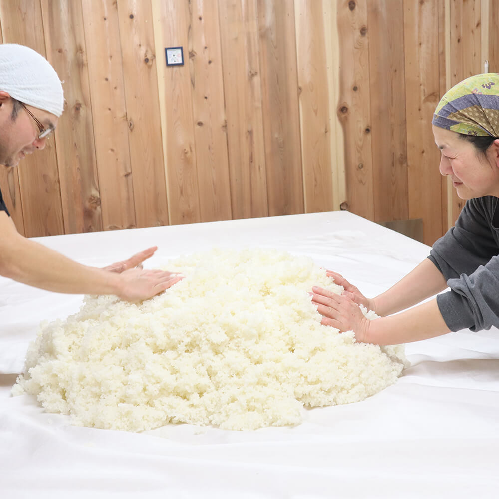 杜氏は井尾さんだが、日本酒造りに関しては髙橋さんと嶋田さんも意見やアイデアを積極的に出している。「フルーティな味わいに」「まろやかな味わいに」と感覚的な意見になるが、理想の味わいを追求しているのだ。もちろん仕込み期間中は髙橋さんと嶋田さんも、酒蔵で蒸した酒米の手もみ作業などを手伝う。また、直売所での接客に心を込めたり、ネット注文の商品を発送する際に一筆書いて同封したり、丁寧に包装したりと、女性ならではのきめ細やかな気配りを大事にしているのだ。