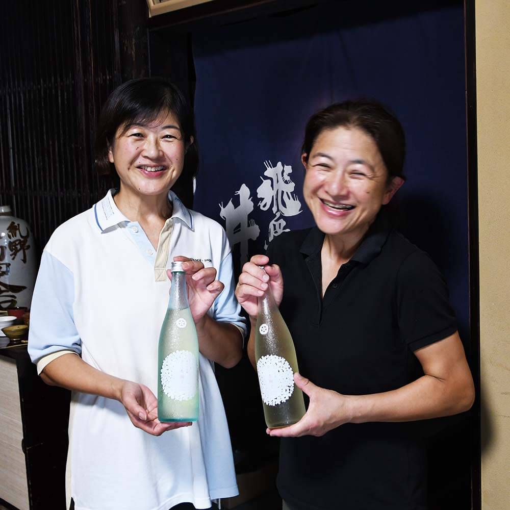 300年あまりの歴史を築く丹生酒造を切り盛りする姉妹のお2人。長女の髙橋 裕子さんが社長を務め、次女の嶋田 明美さんが企画・営業・広報を担当する。杜氏は福井県大野市に住む井尾 光洋さん。地域に根付きながら、広く愛される日本酒造りに取り組んでいる。地域貢献を意識し、地元産のお米のみを使用。女性ならではの視点を活かして、新しい商品である純米大吟醸「さくら鞠子」もリリースした。