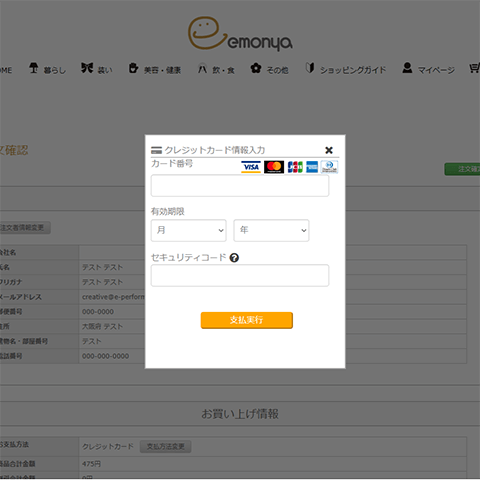 ・セキュリティ保護のため、カード情報は暗号化して送信されます。