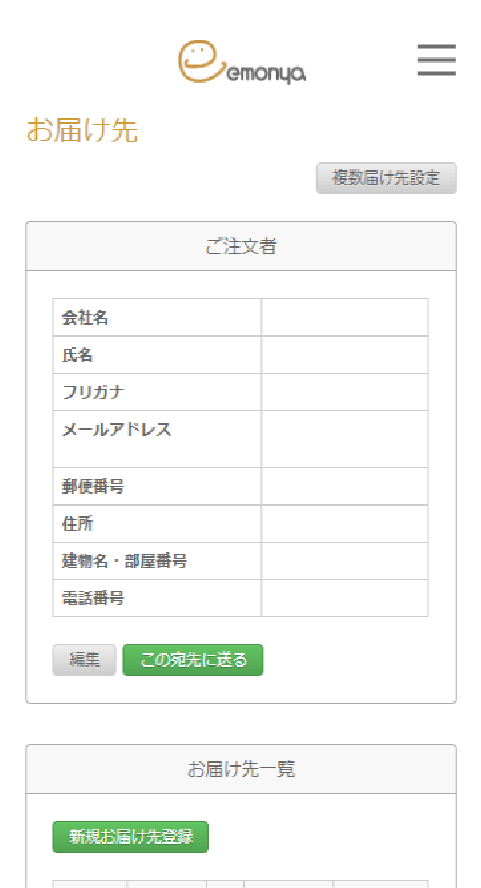 ご注文者様ご自身がお届け先の場合は、ご登録いただいている会員情報が既に入力されていますので「この宛先に送る」からそちらを選択してください。